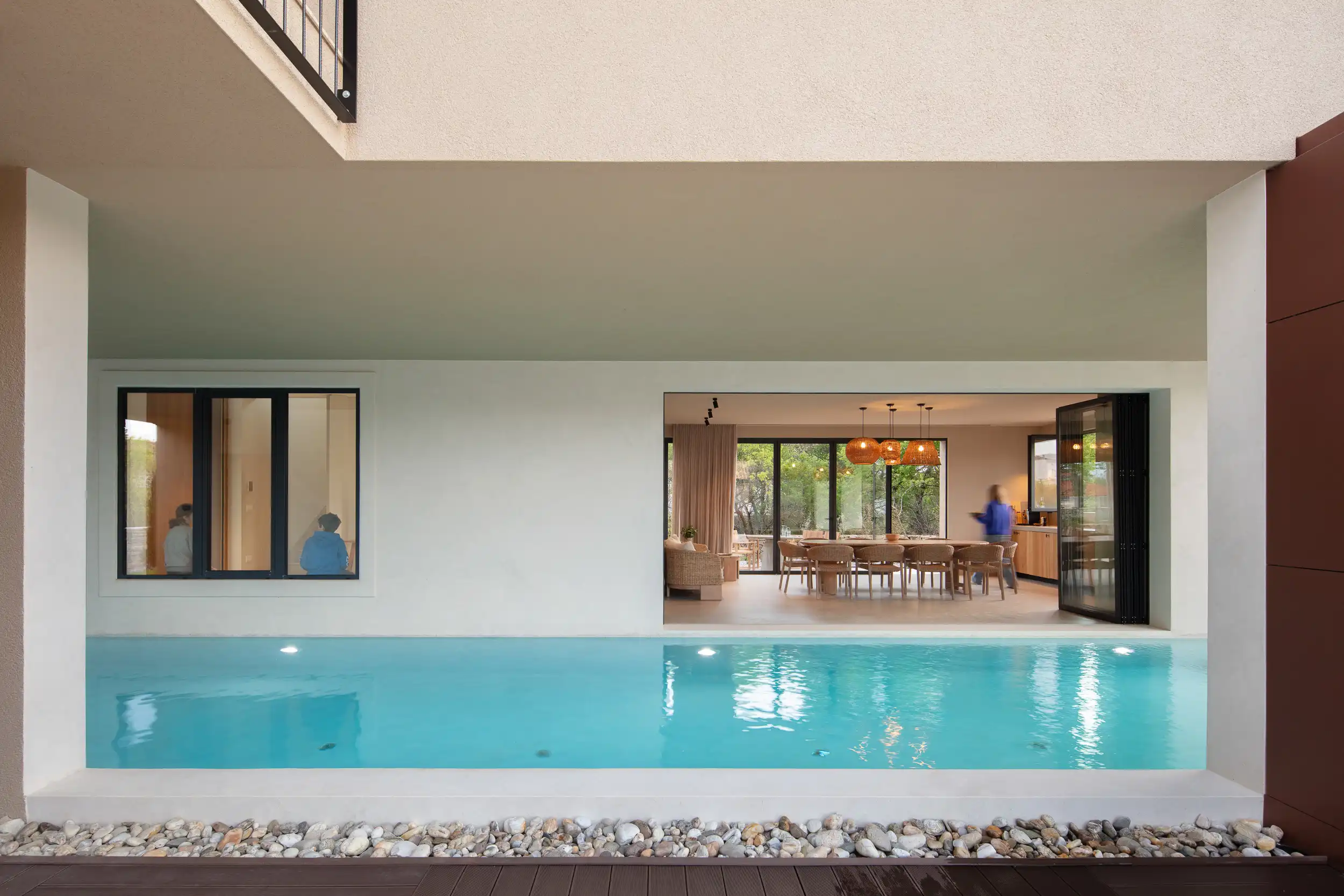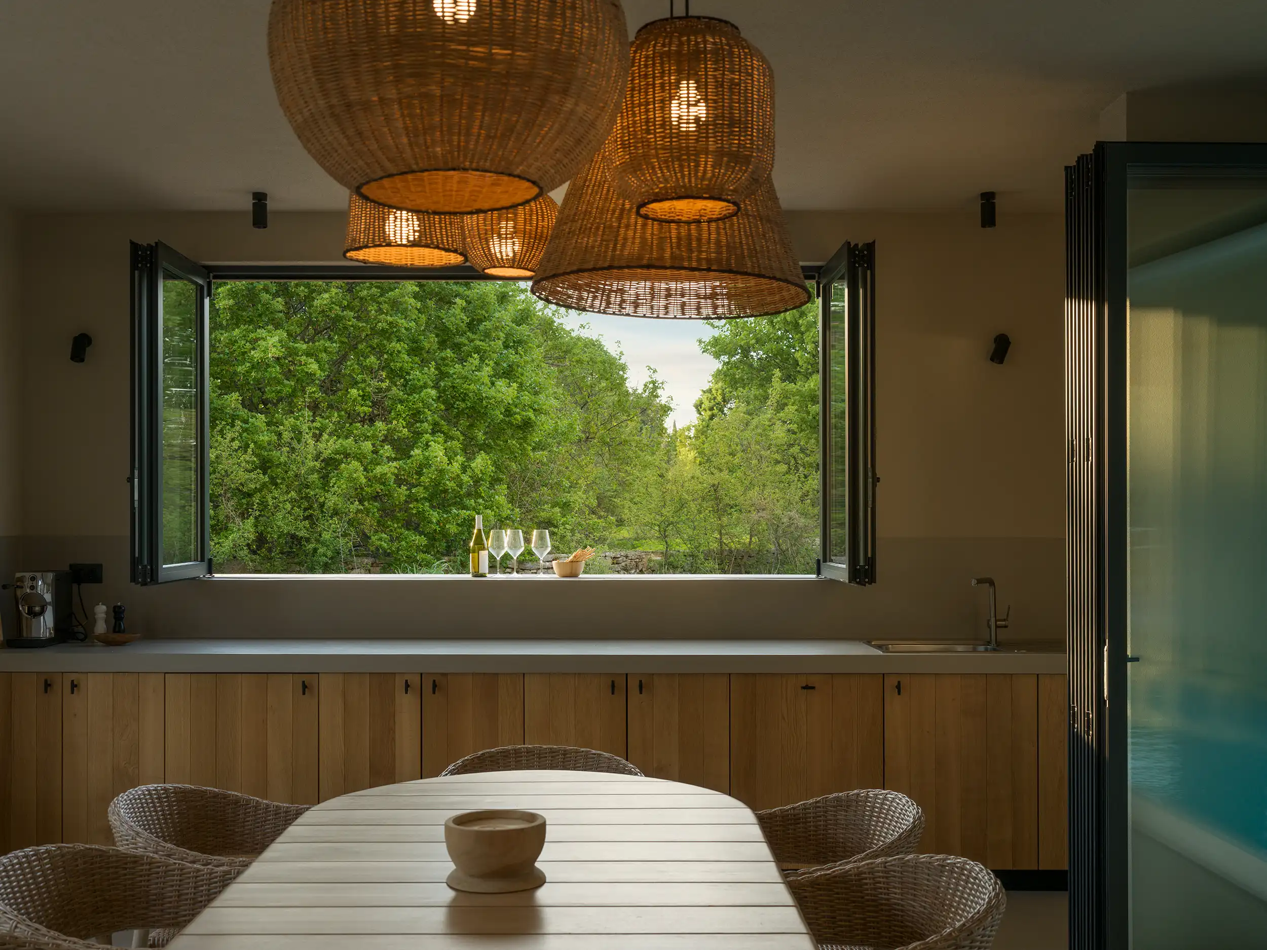 The Pool House, Bale - Luxury Living in the Heart of Istria. Tucked away in the tranquil charm of Bale and just a short stroll from its picturesque center. With 3 elegantly styled bedrooms and 4 spa-inspired bathrooms, a picturesque view of the old town from the living room, this stunning retreat is crafted for comfort and indulgence. Relax in the expansive, private swimming pool, unwind in the sauna, stay active in the fully equipped gym and savor Mediterranean evenings in the stylish summer kitchen. The house is a two-story house. The bedrooms and living area are located on the first floor and are accessed by internal stairs. On the ground floor the guests can enjoy an outdoor kitchen and seating area, which are located just next to the heated swimming pool (from May to September). The swimming pool is 17.5 meters long. This property is a private residence, and no other guests will be present during your stay. Please note that certain areas on the ground floor are reserved for the owners personal belongings and are not accessible to guests. These spaces are securely locked and are not depicted in the interior photos provided in the listing.